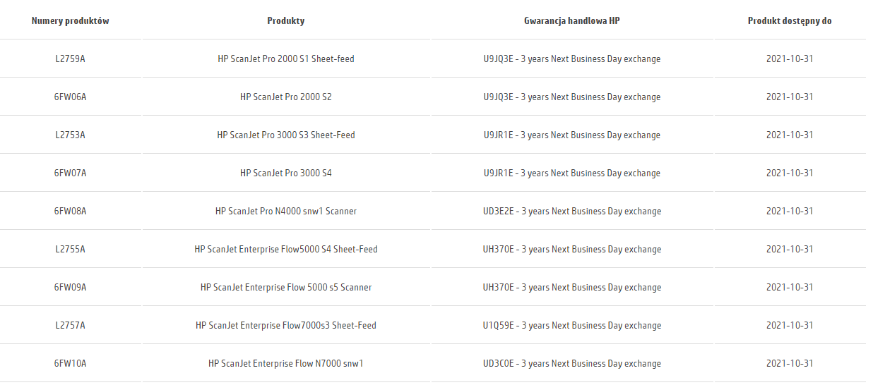 HP oferuje możliwość darmowego przedłużenia gwarancji na wybrane skanery z ich oferty.