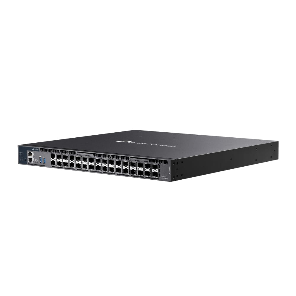 Zarządzalny przełącznik agregujący L3 Omada, stackowalny, 26 slotów SFP+ 10G, 6 slotów SFP28 25G