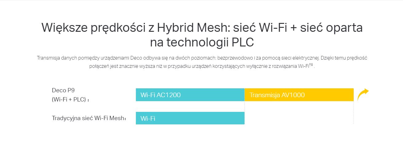 - Sieć Hybrid Mesh: połączenie Wi-Fi i sieci opartej na technologii PLC. Takie rozwiązanie gwarantuje większą przepustowość.