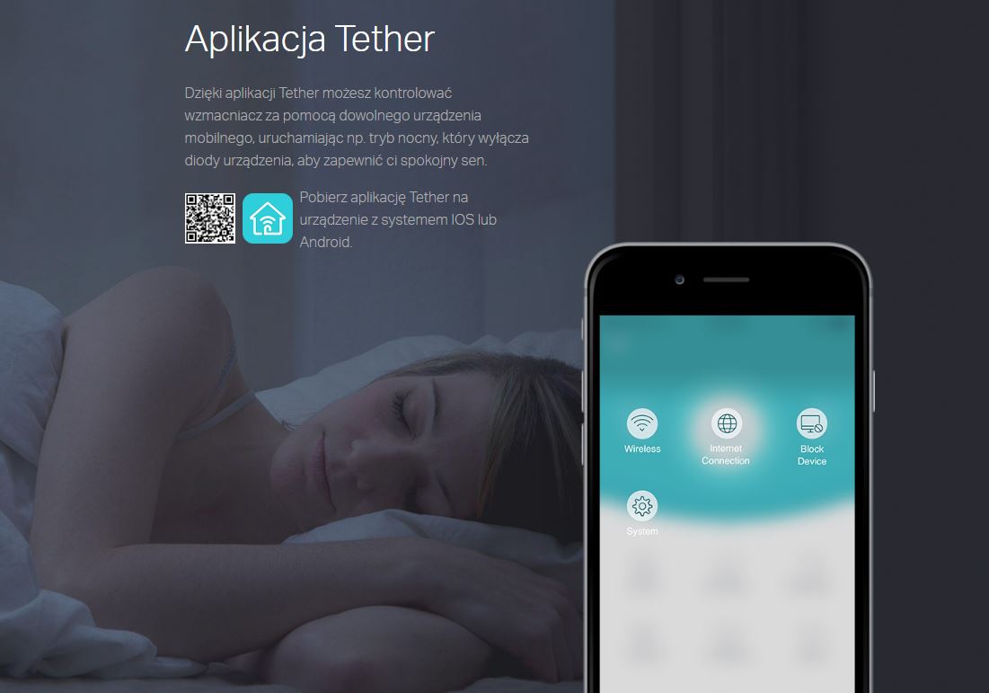 - Aplikacja TP-Link Tether pozwala na łatwe zarządzanie wzmacniaczem za pomocą smartfona.