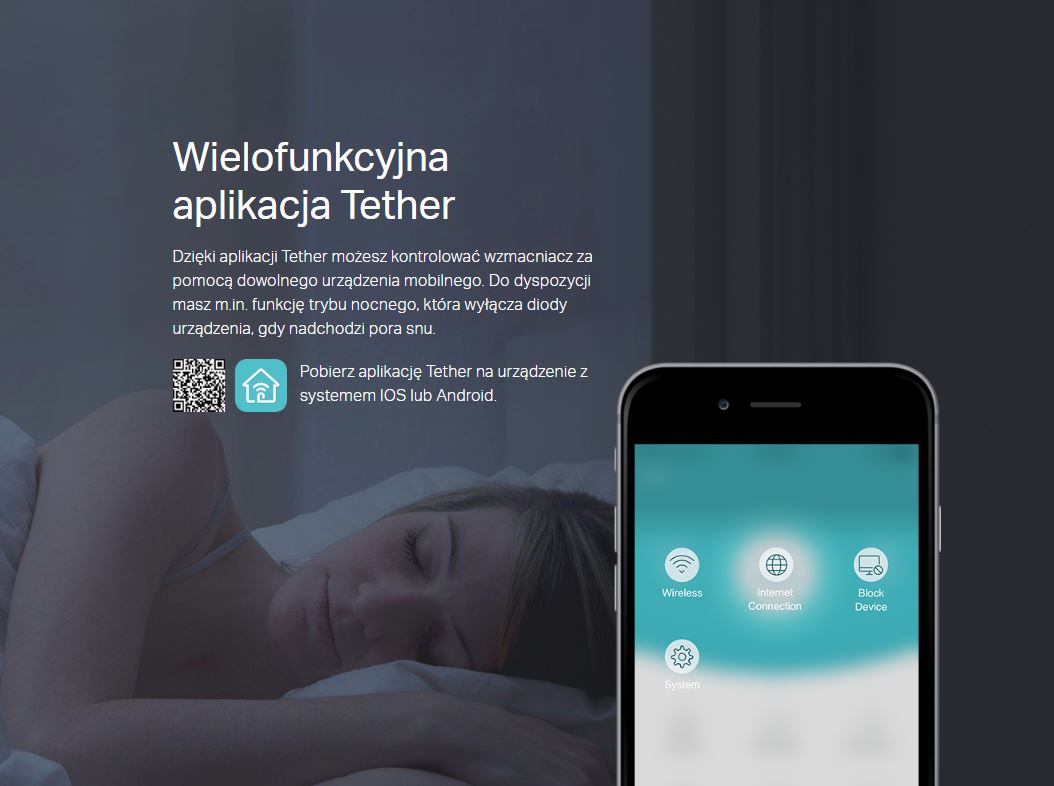 - Aplikacja TP-Link Tether pozwala na łatwe zarządzanie wzmacniaczem za pomocą dowolnego urządzenia mobilnego.